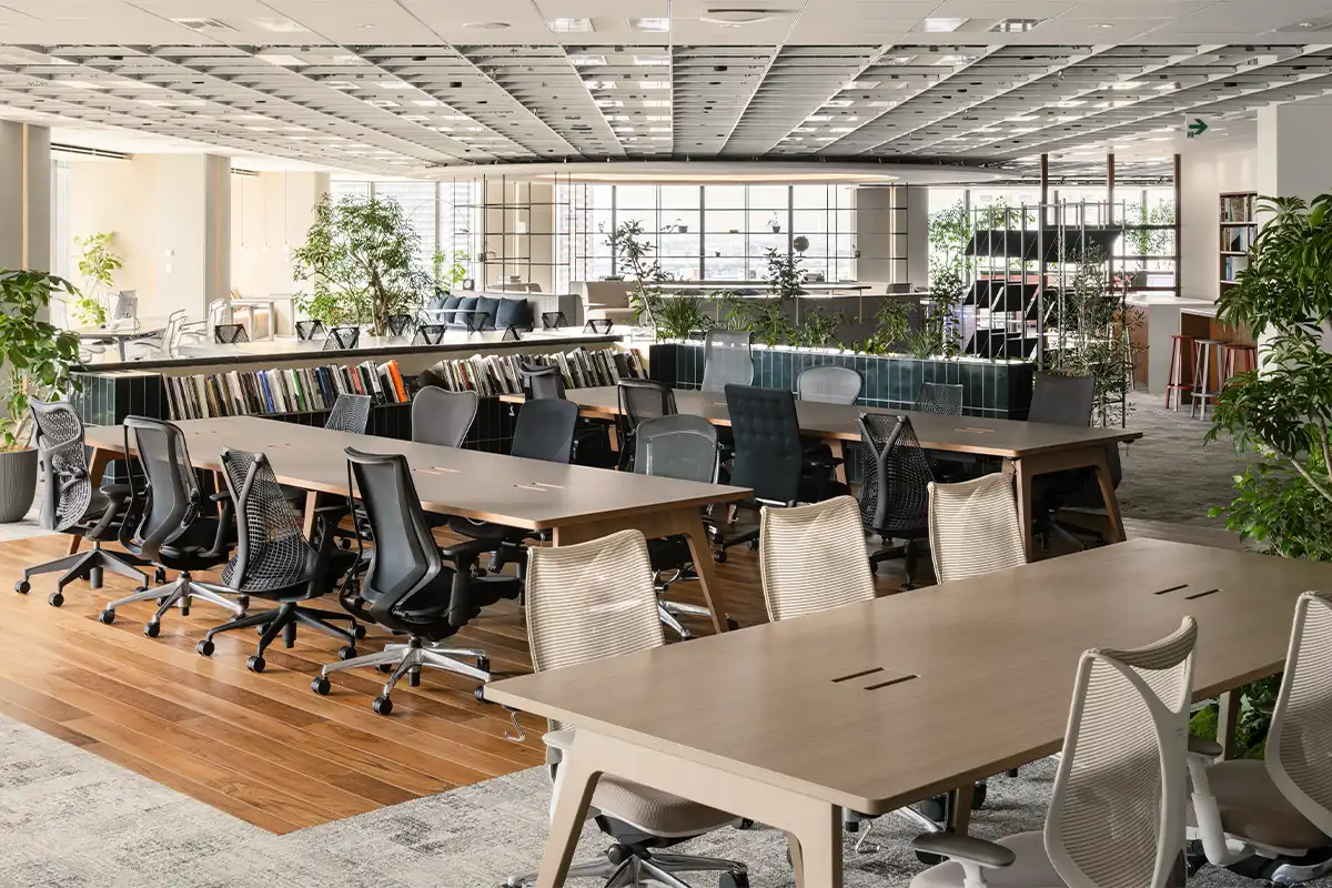 オフィスをご案内いたします。ワークスペースなどもご覧いただきリアルなはたらき方を見ていただけます。
