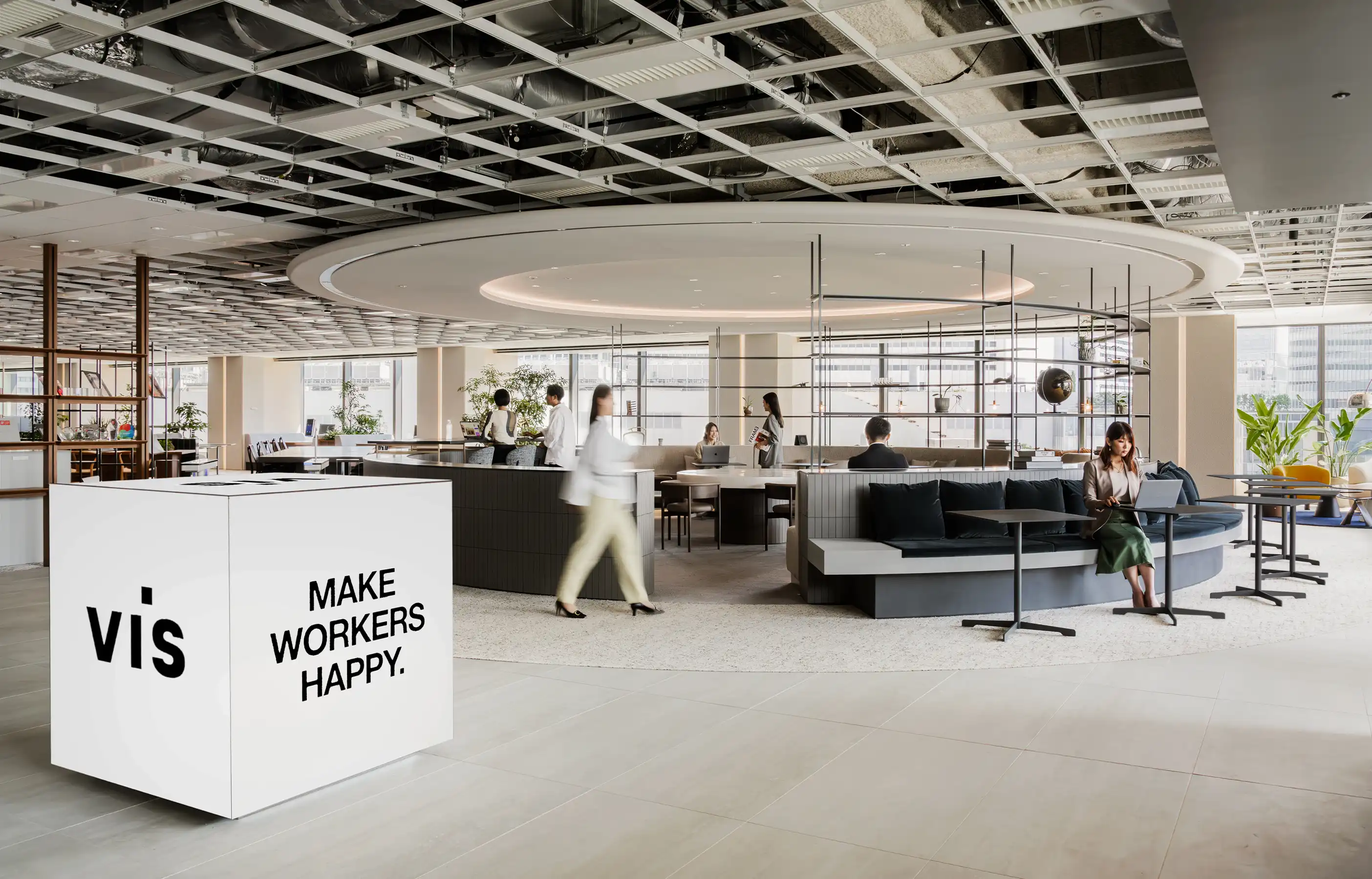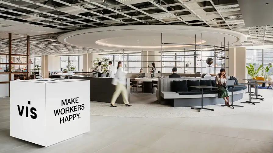 今まで培ってきた知見や実績と、プログラミングで分析したデータやシミュレーションをもとに、クライアントごとに異なる課題や要望、将来像を追求し、ワークプレイスを構築していきます。ヴィスのプロジェクトマネージャーやクリエイター、コンストラクションマネージャーが一貫してサポートすることで、お客様に最適化されたワークデザインを実現します。