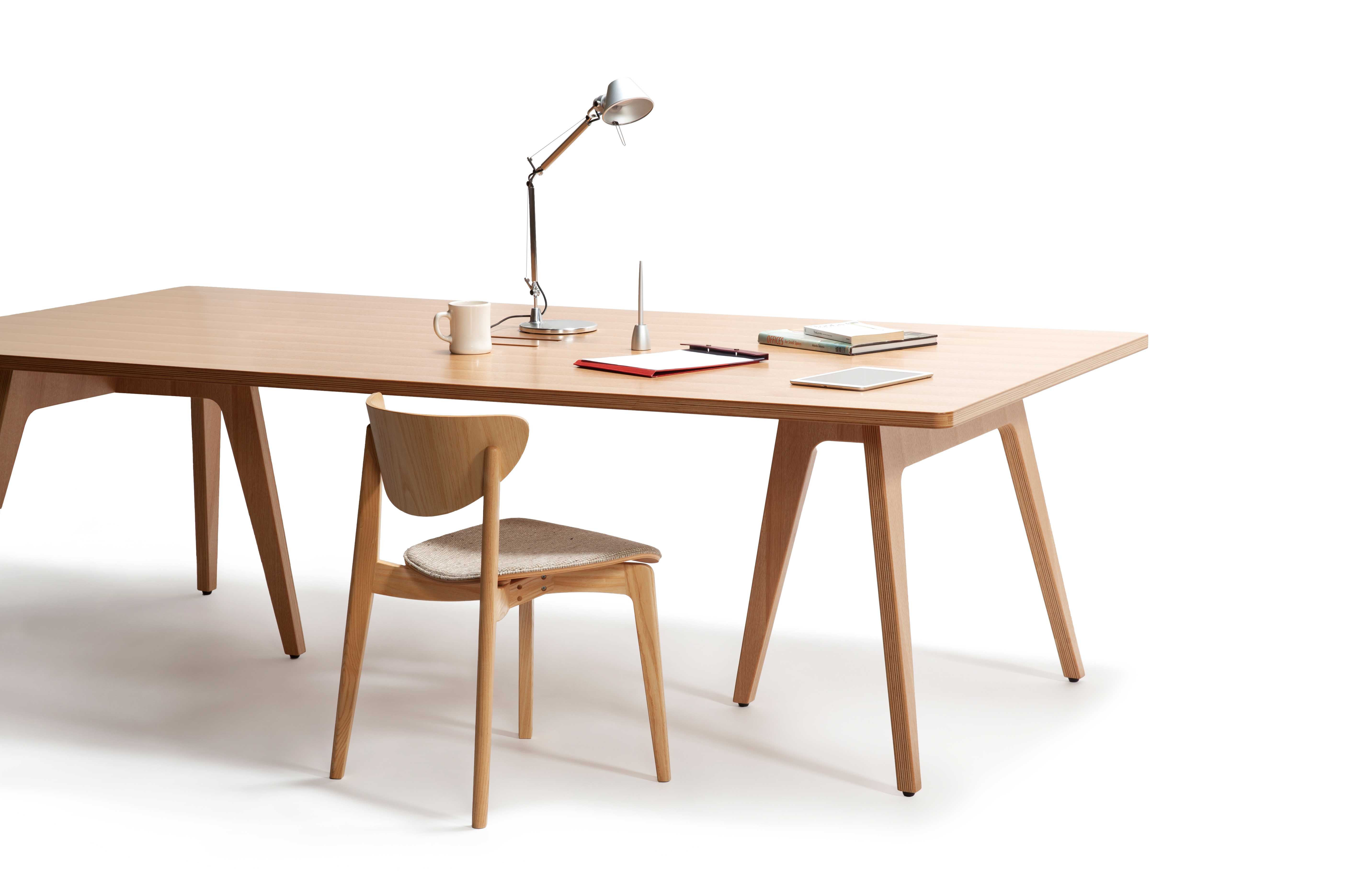 木の良さを存分に活かしたワークテーブル。ホームユースの雰囲気にオフィスの機能性を持たせ、働く環境に柔らかな雰囲気をもたらします。木材には国産木材を100%使用。天板仕上げ材にもエコロジー素材を使用し、環境に配慮しています。
