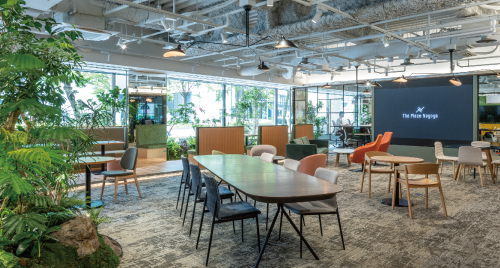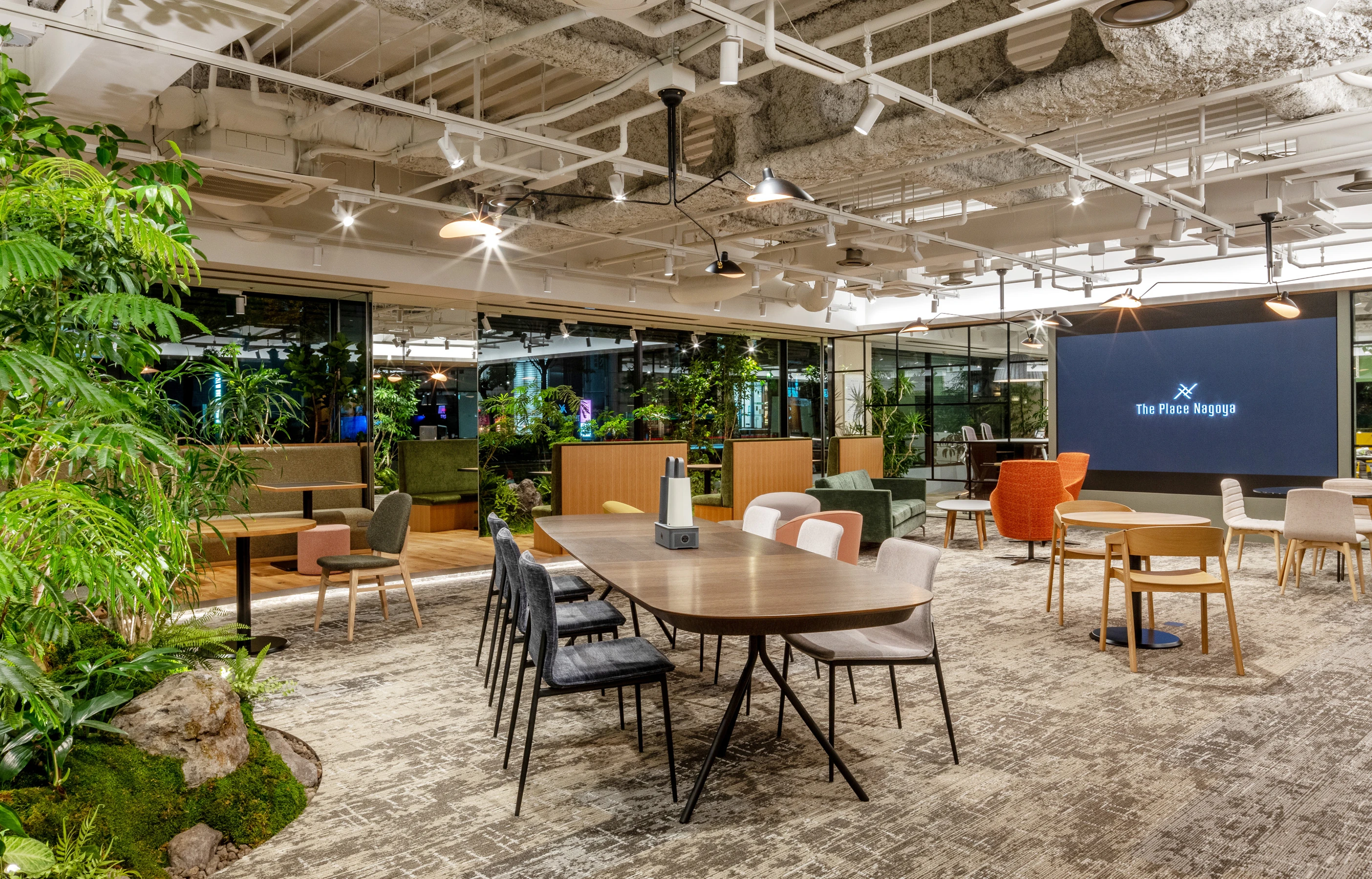 「The Place Nagoya」内で、シェアオフィス・共用ラウンジ併設の名古屋オフィス。 ガラスを多用し、多くの植物と間接照明で「彩り」を加えた開放感あふれるオフィス空間です。