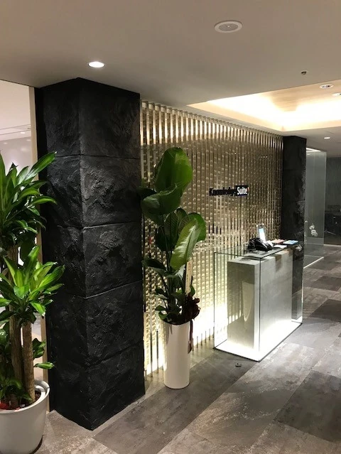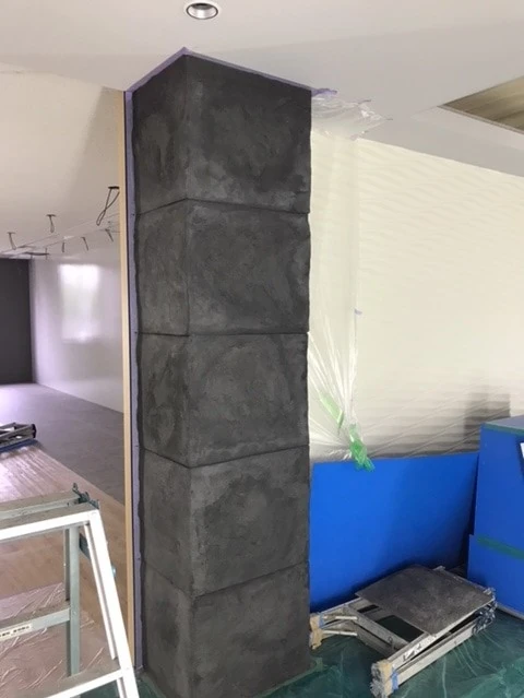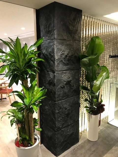 まるで本物の岩を柱に施したような、高級感のある空間に仕上がってますね!!