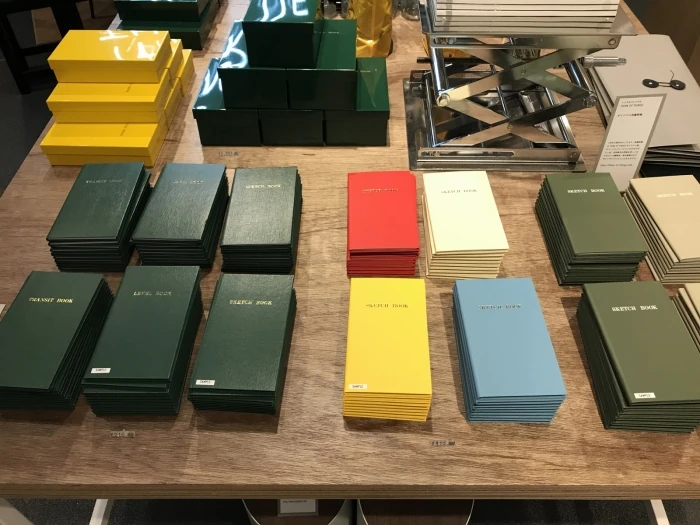 こちらはもともと、測量士のために開発されたノートです。作業着のポケットに入るサイズで、中には罫線がひかれており、台紙がなくても書けるように硬い表紙でできています。以前から特定の職種で使われているこのような文房具を、カラーバリエーションを増やし生まれ変わらせて、「THINK OF THINGS」のオリジナル商品にしているます。丈夫な表紙と金文字で高級感があり、無駄のないサイズ、無駄のない厚み、シンプルなつくりが、現代のニーズもマッチしていますね。