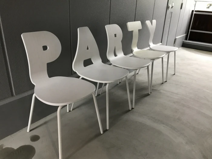 そしてもこのアルファベットチェアも、企業名にアレンジしてエントランスに置いておくだけで、企業ブランディングにつながります。少しの工夫とアイデアで、パッと目を引く空間に早変わりですね。「V」と「I」と「S」置こうかな。