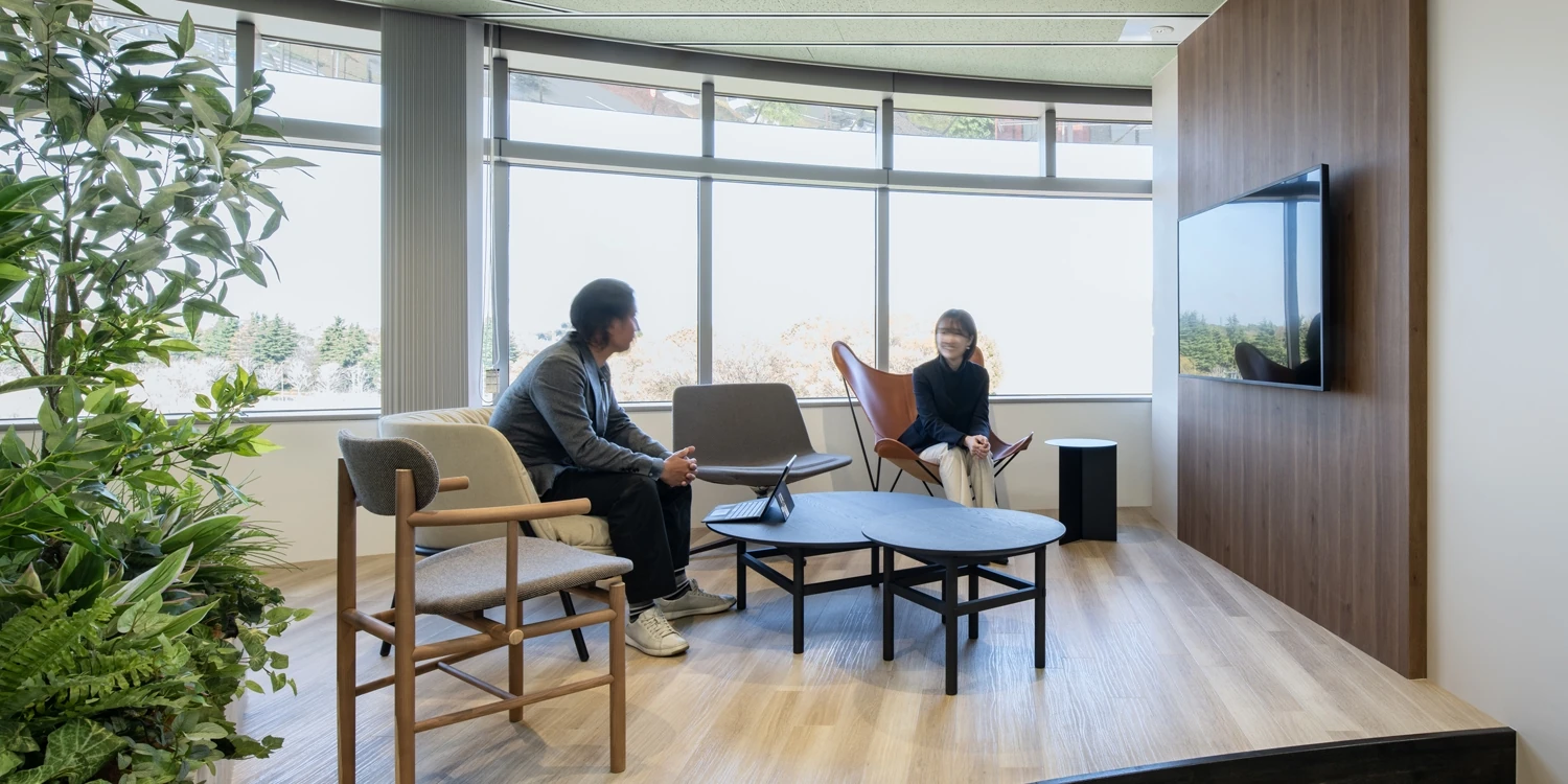 日本支社として初めてとなるオフィス開設プロジェクト。急成長企業のオフィスに必要なものは「変化に対応できる柔軟性」だと考え、目的に合わせて選べる多様な席をレイアウトに落とし込み、人員増加の余白も残しました。ワークスペース内はベースワーク用のデスクに加え集中席やリフレッシュエリアも設けています。世界を目指す企業として安心感を打ち出せるよう、落ち着いた雰囲気と明るさを兼ね備えたデザインイメージをベースに、社員の皆さまの士気を高めるよう社員用エントランスは高級感のあるタイルを用いて上品に仕上げました。家具も海外製品を多く取り入れ、はたらく場所を楽しく選ぶことができるオフィスです。