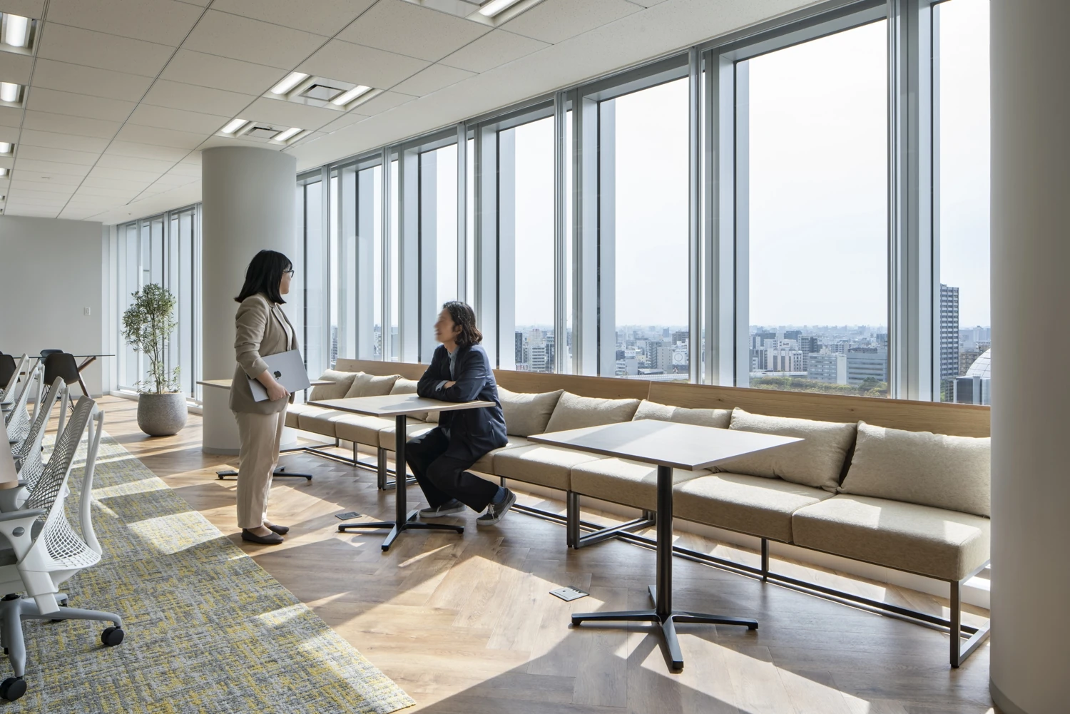 新たなオフィスは、"価値観を体感し、笑顔を創造する場"として設計されました。理念やビジョンを自然に体感できる環境を整え、リアルなコミュニケーションの促進とチームの結束力を高めることに成功しました。また、オフィス出社によって自然と笑顔が生まれる環境を実現し、仲間とのつながりを深めることで、前向きな職場環境を作り出しています。さらに、オフィス内でのABW(Activity Based Working)を実践できるようにし、フリーアドレスデスク、窓際の席、ソファスペースなど、多様なエリアを設けることで、スタッフが助け合い、成長できる場を提供しました。デザインにおいては、シンプルで明るい色調を基調とし、誰もが長く愛せる空間を構築しました。