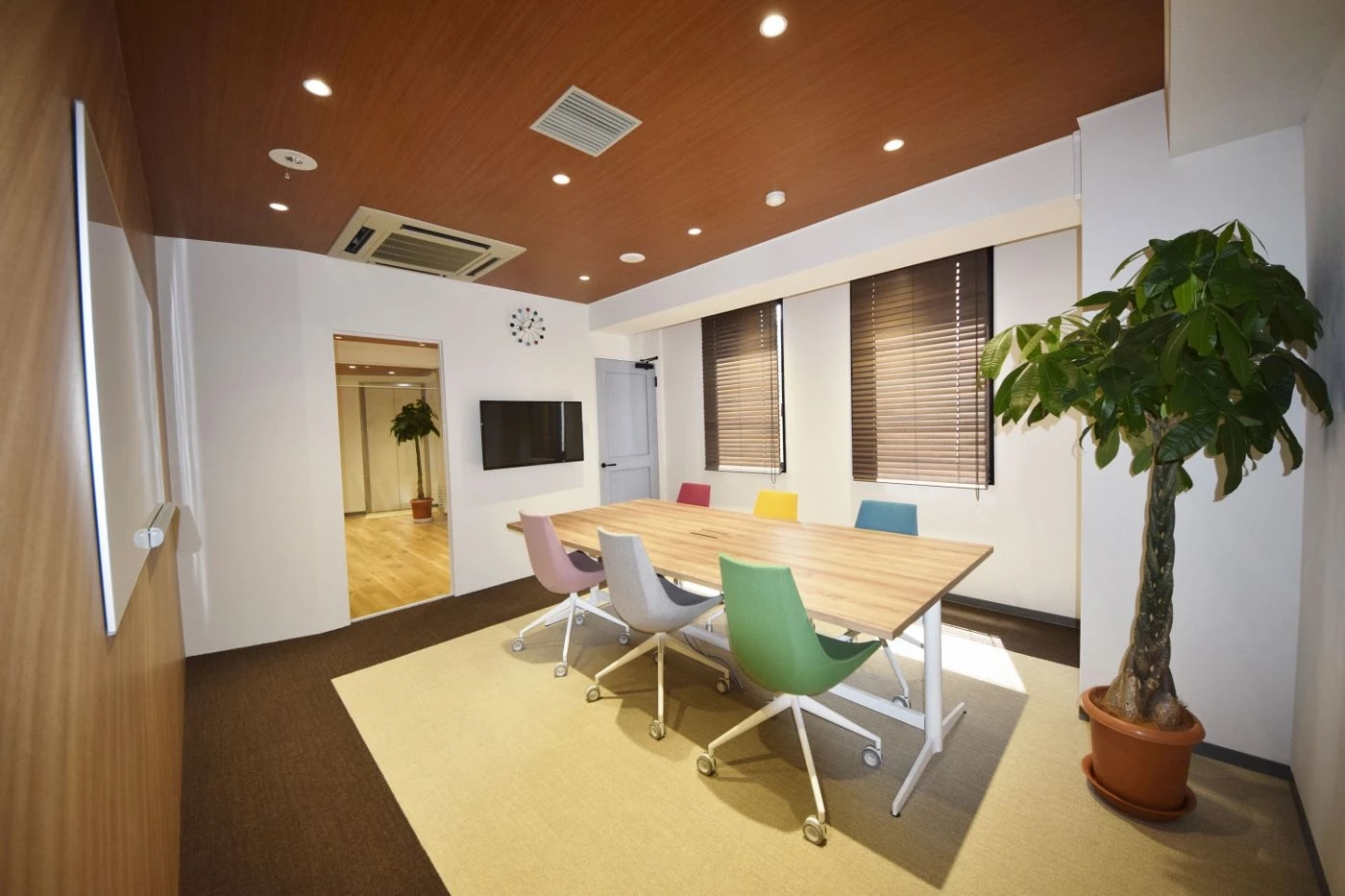 また各会議室はカーペットやチェアに色味を加えることでエントランスの落ち着いた雰囲気とは違った遊び心を表現しております。