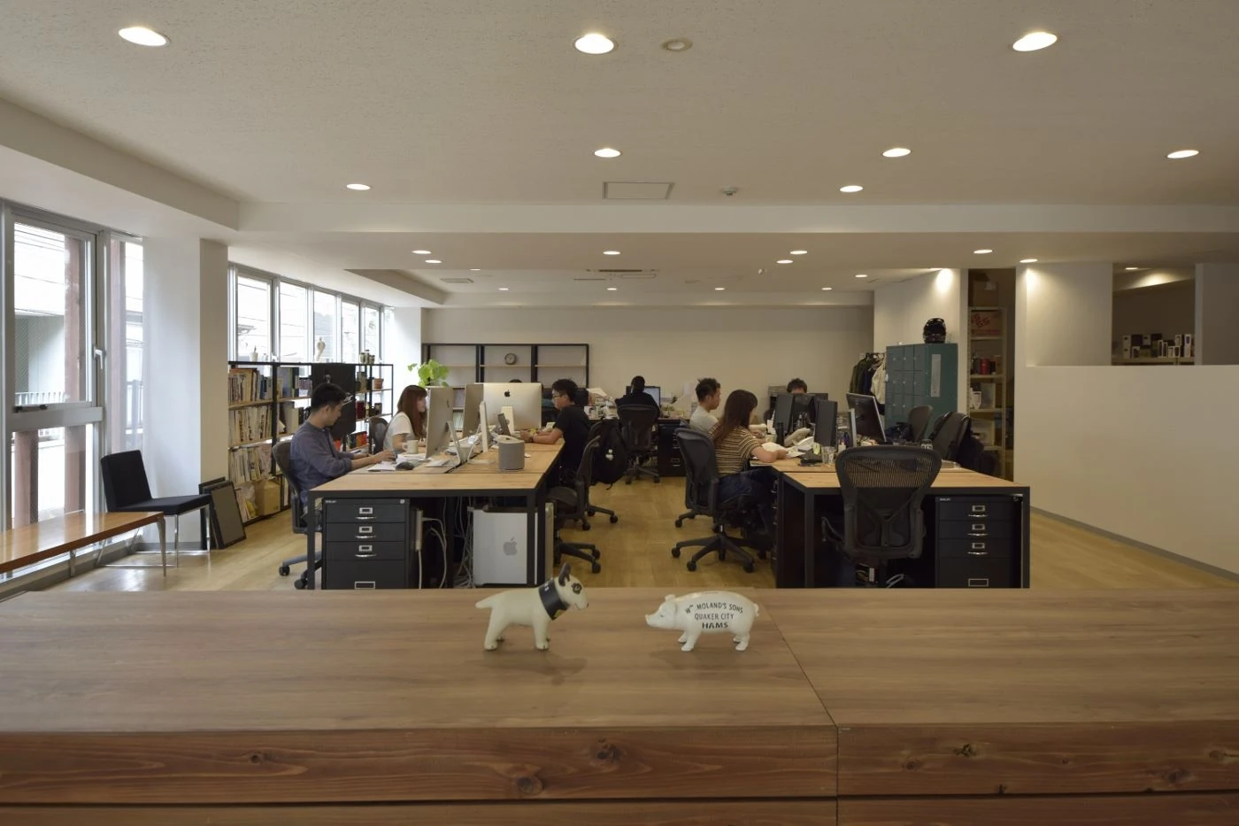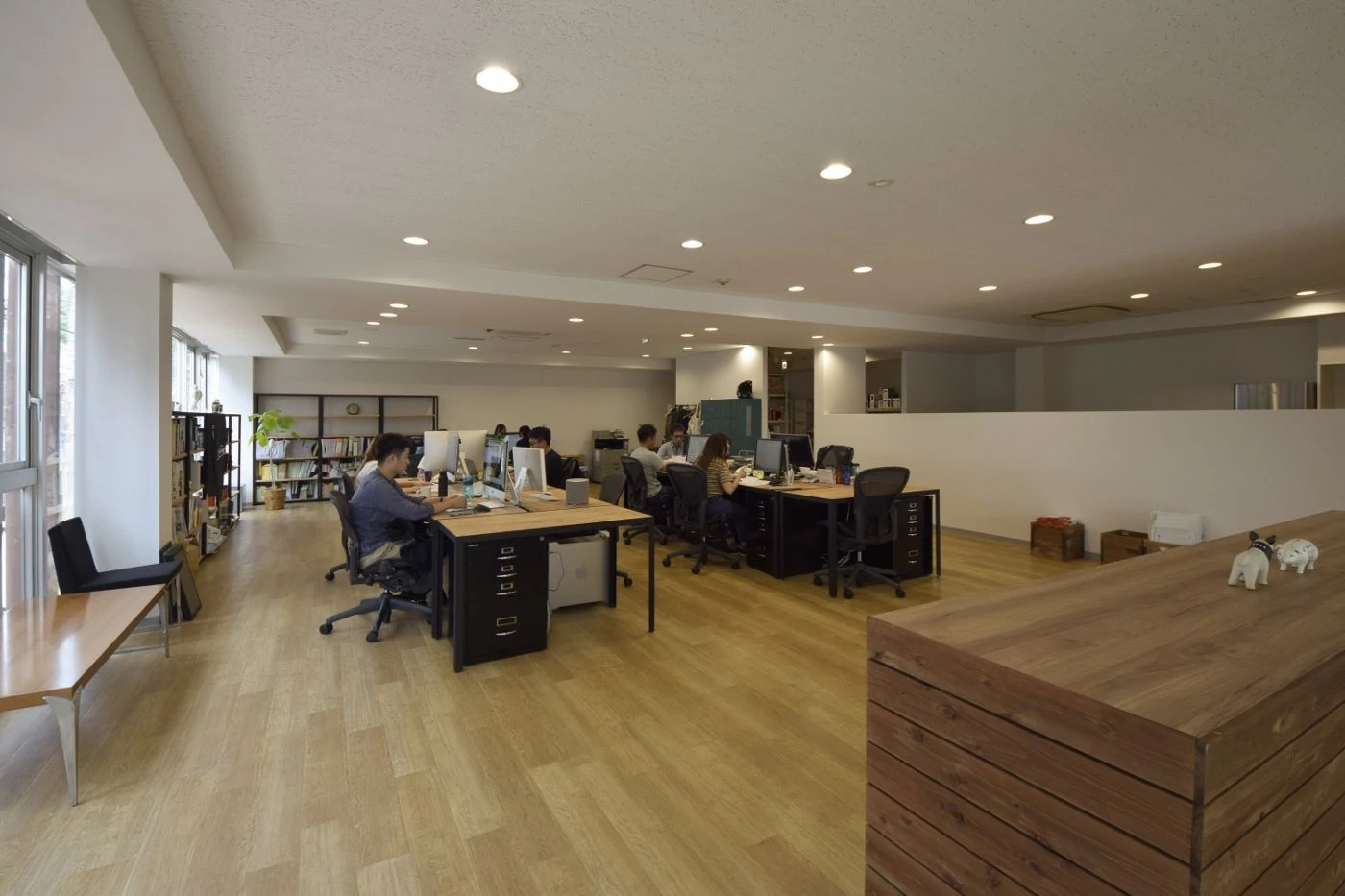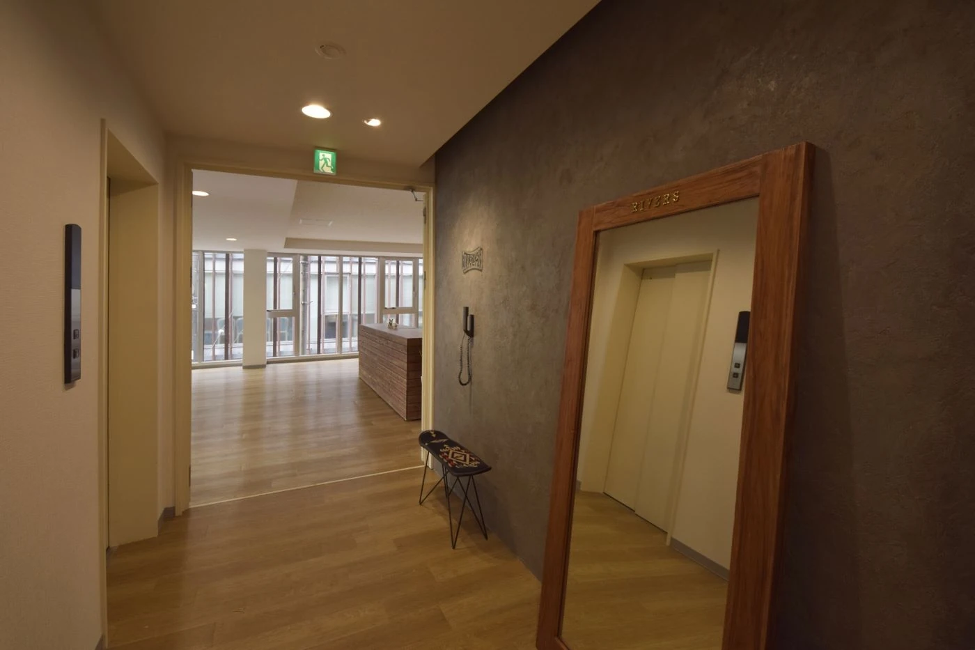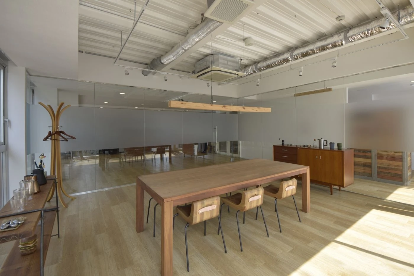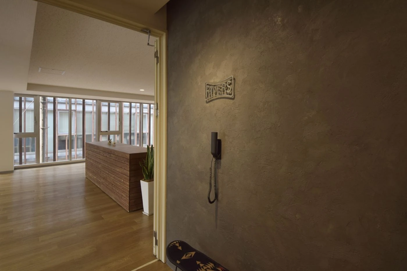駒沢公園の近くという緑豊かな環境に新たなオフィスを構える移転プロジェクトに携わらせていただきました。リバーズ様のブランドイメージやスタッフ様の個性が際立つようオフィス空間はシンプルな構成にしました。外からの採光を生かすよう会議室を隔てる壁も全面ガラスを採用し、床の木目柄の素材とともに空間の広がりも感じさせるようにしました。エレベータから降りて正面にある社名ロゴを設けたエントランスの壁はモルタルで仕上げることで風合いの変化をもデザインし、これから一緒に過ごす時間(トキ)の動きを感じられるようにしました。シンプルであることが心地よさを感じさせる、そんなオフィス空間です。