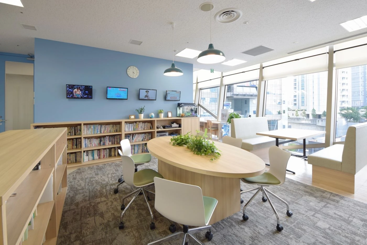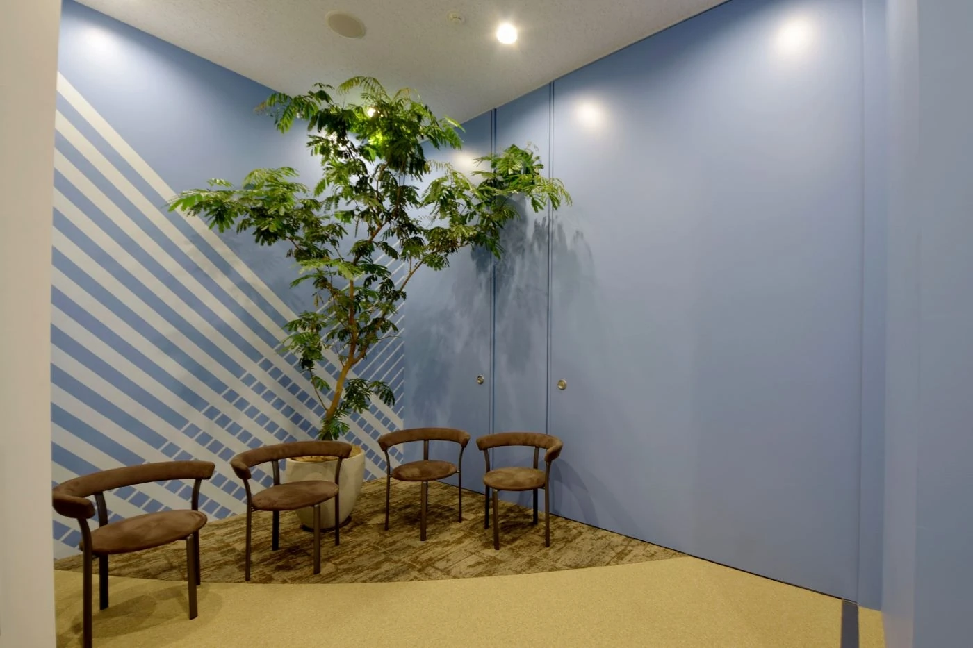 鮮やかなブルーが織りなす、自然を感じられるナチュラルオフィス