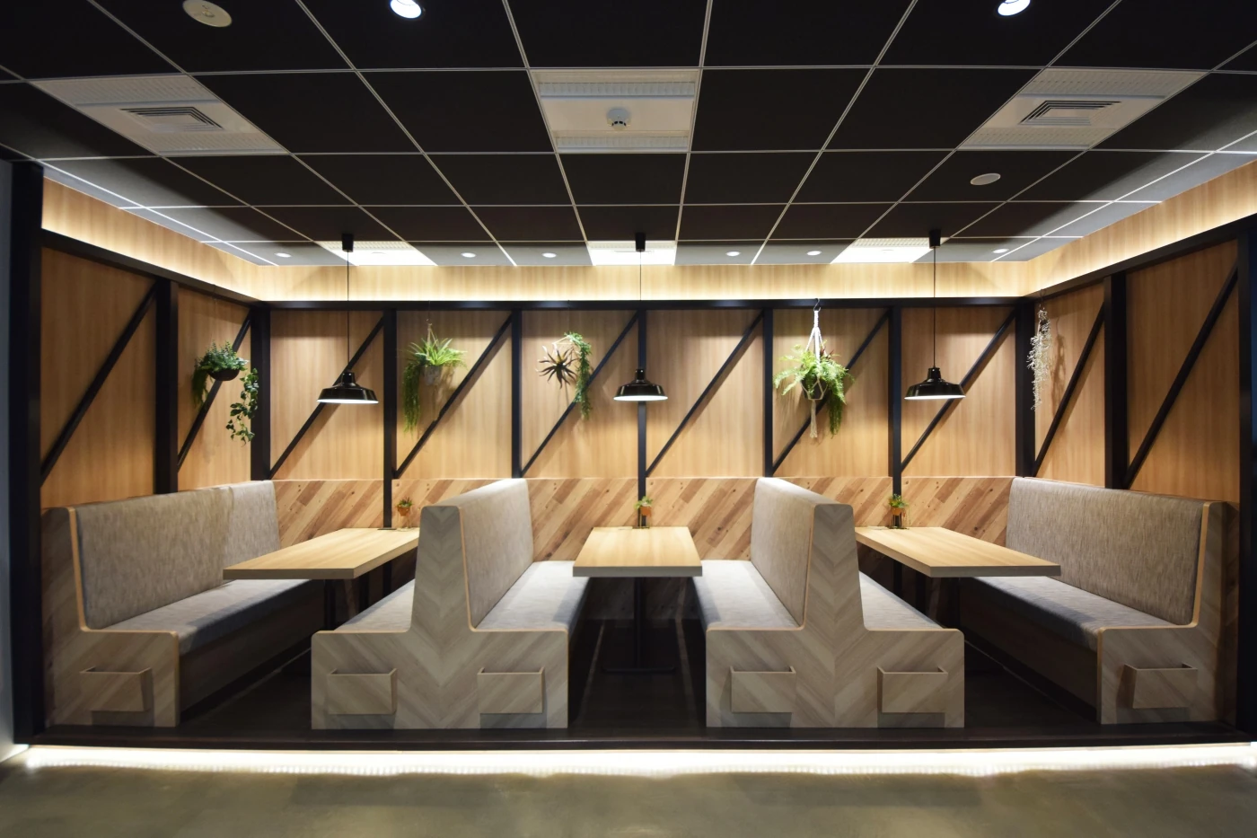 渋谷から五反田へ新天地への移転ということで、今までの印象とは異なる、新たなブランディングを発信する場になるようデザインしました。エントランスはシンプルにまとめた半面、横のガラス窓から見えるリフレッシュエリアにはロゴやグリーンを配置し、社員の皆様や来社されたお客様がわくわくできる空間になっております。会議室にはそれぞれ部屋の名前に合わせたアートやグリーンウォールを取り入れ、内容に合わせて部屋を選ぶことができます。社員の皆様が最大限のパフォーマンスを発揮できるよう、コミュニケーションスペースを中央に集約し、業務内容によって働く場所を選択できるようにしました。