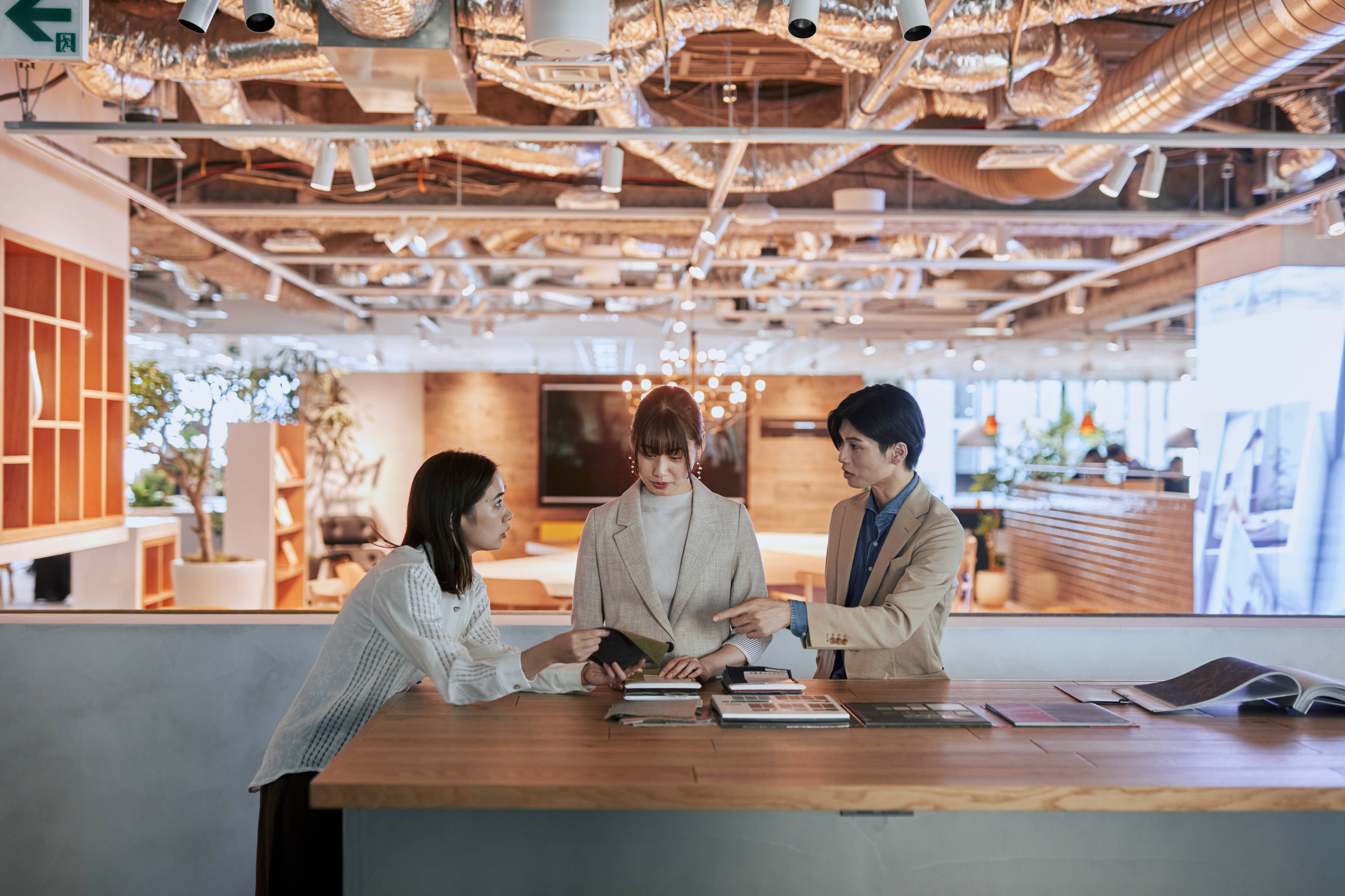 出社とテレワークを組み合わせるハイブリッドワークでは、オフィスの役割が「コミュニケーションの場」へとシフトします。オンライン会議に対応した防音ブースや、来客対応と社内打ち合わせを両立できる会議室設計が求められます。また、座席予約システムや利用率データを活用し、スペースの最適化を図ることも重要です。