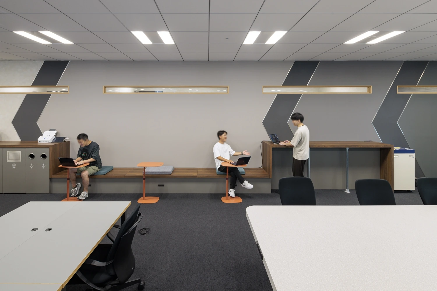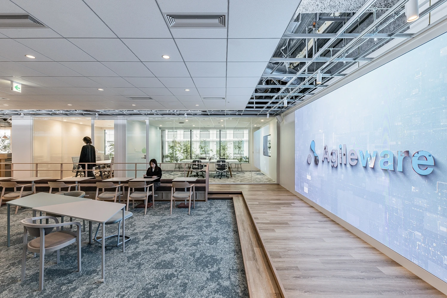 社員が自然と出社したくなる環境を目指したプロジェクト。生産性とエンゲージメントの向上を目的にABW を取り入れたレイアウトを採用し、快適に働け、持続的成長を支えるオフィスを設計。壁を必要最小限とし、段差による高低差を設けることで、ひとつながりの広がりの中に、多様なシーンを共存させています。オフィスの中心には大人数で集まれる場を設け、キッチンやカウンタースペースを組み合わせることで、日常の中での交流やイベントにも活用できる仕掛けとしました。