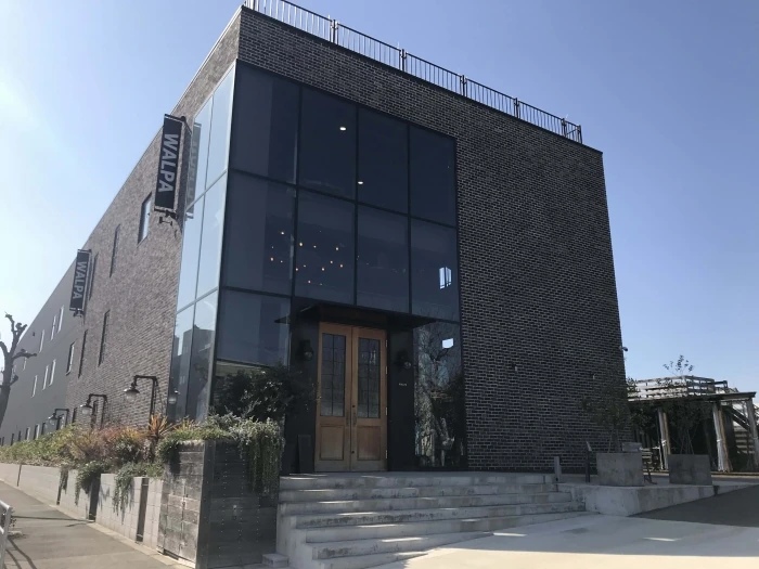 車で訪れる人ばかりなので駐車場はとても広く、WALPAのロゴが入った滑り台など