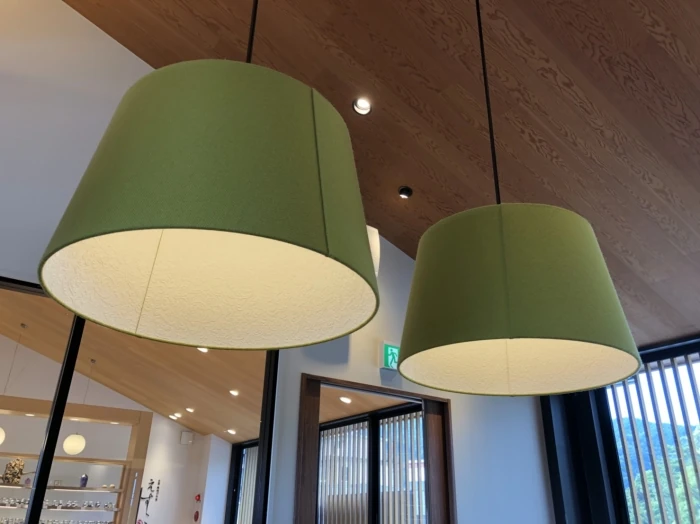 またこちらのペンダントライトは注連縄の垂れ(写真1枚目の参拝されている方々の頭上部分)