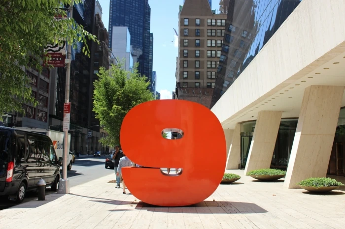 グラフィックデザイナーIvan Chermayeff作の数字9を表した赤いオブジェ。ストリートを歩いているとど真ん中に現れます。逆から歩くことが多かったので、しばらくはアルファベットのeだと思ってました。
