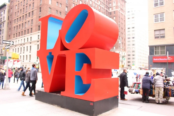 Robert Indiana作のパブリックアート。日本でも新宿アイランドタワーにあるのでご存知の方も多いのではないでしょうか。VとEの字の間に挟まらず通れると恋が成就するという噂があるようです。