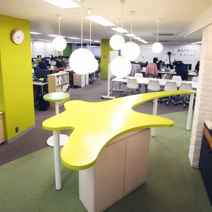 例えば、当社クライアントのレアジョブ様はオリジナルのテーブルが設置されています。