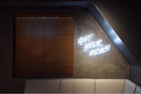 こちらは光るネオンサインを使用し、ぴん出しをして、文字を浮かしています。