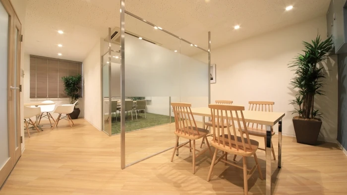 ちょっとした来客や、社内ミーティング、面接などでも活用いただけるよう、視覚的プライバシー性も考慮してます。
