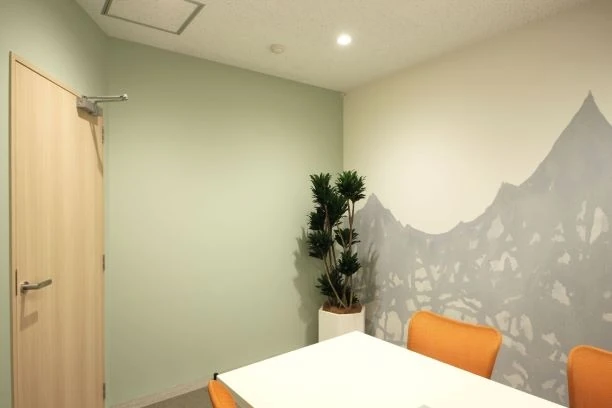 天井までの間仕切りでコンパクトな会議室ですが、