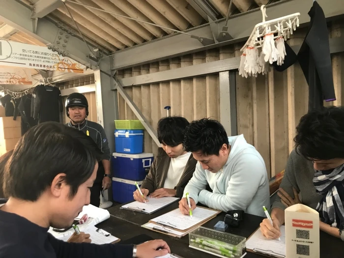 まずはインストラクターさんから安全説明の話を聞いて免責同意書の記入。