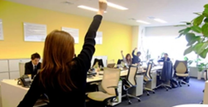 「今日も一日頑張るぞ!」の掛け声の後に、メンバー全員で