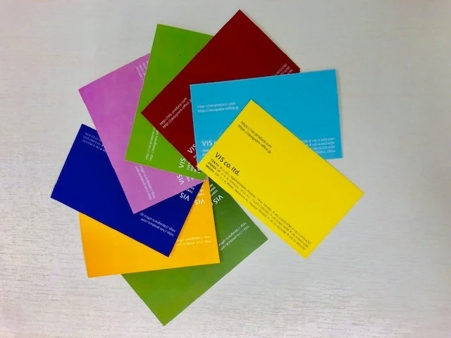 ヴィスの社員は全員名刺を持っているのですが、一人ずつ名刺の裏の色が違うのです!
