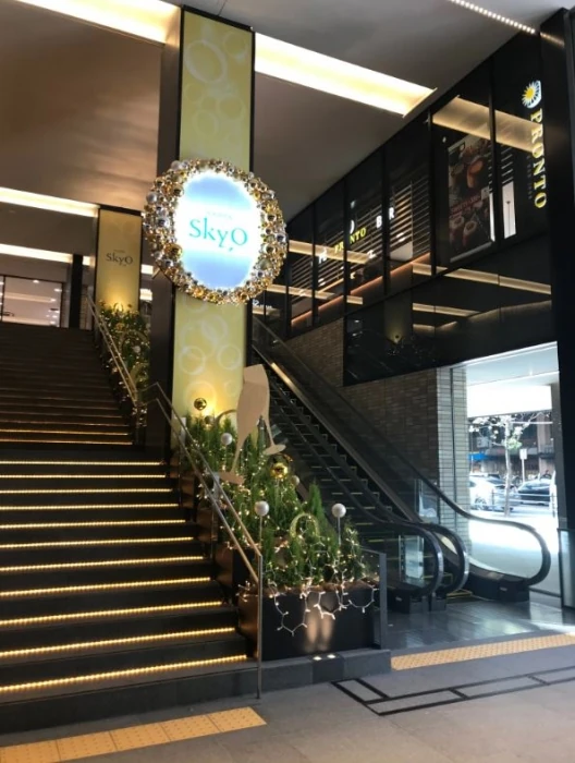 今回は、なんばスカイオの共用部の天井が各フロアで工夫されていたので、