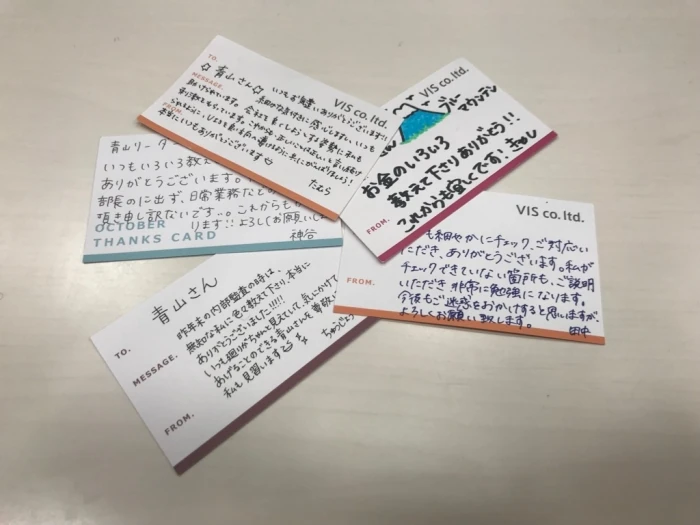 ヴィスでは、毎月月末になると、日頃の感謝をカードに込めて、