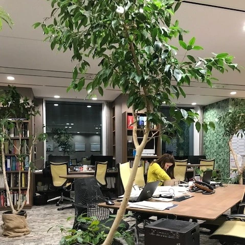 このようにオフィス内にグリーンをふんだんに取り入れることで、