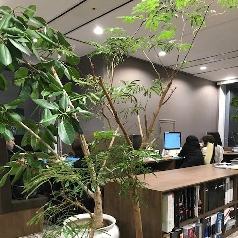 本日は、オフィスにグリーンをたくさん取り入れて、