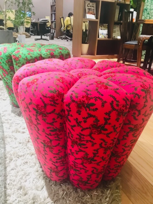 なかなか珍しいパプリカみたいなこのスツールはお客様との話題にもつながります。