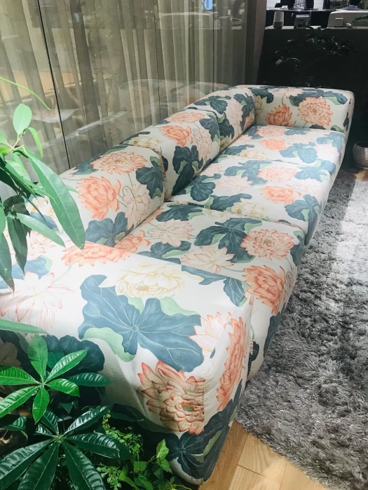 お客様とリラックスした状態でお打ち合わせをすることができたり、社内のMTGにも使用できるこの印象的なソファーは
