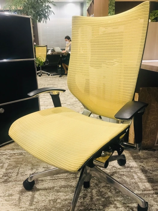 私たちのコーポレートカラーでもある鮮やかなイエローのバロンチェアを愛用しております。