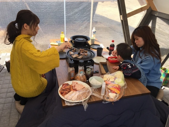 テントの中はこたつになっていて冬でもとってもあったかいですよ!