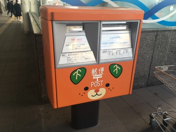 写真は松山市駅前にあった、みきゃんのポストです。かわいかった。