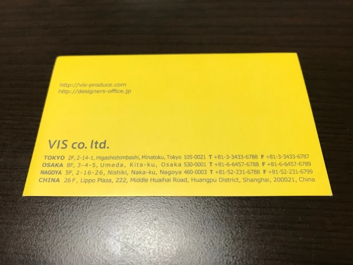 ヴィスでは、1年目の名刺のカラーはコーポレートカラーでもあるフォーチュネイトイエローです!!