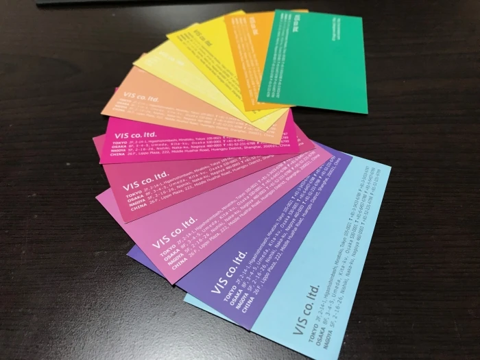 一緒に働くメンバーの一部の名刺だけでもこんなにたくさんの色が集まりました!