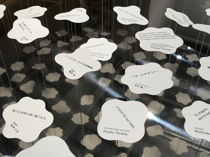 また同じ6階では「言葉から始まるデザイン 栗の木プロジェクト展」が開催されており、ここでは様々な人たちに「デザインは( )」という質問を投げかけ、「デザインとは何だろう」という疑問に対してテーマを探る試みをしています。