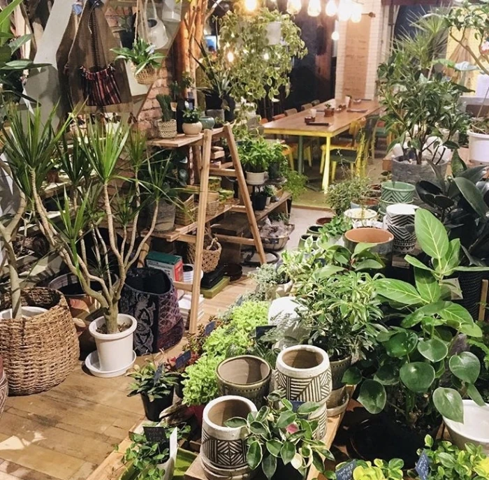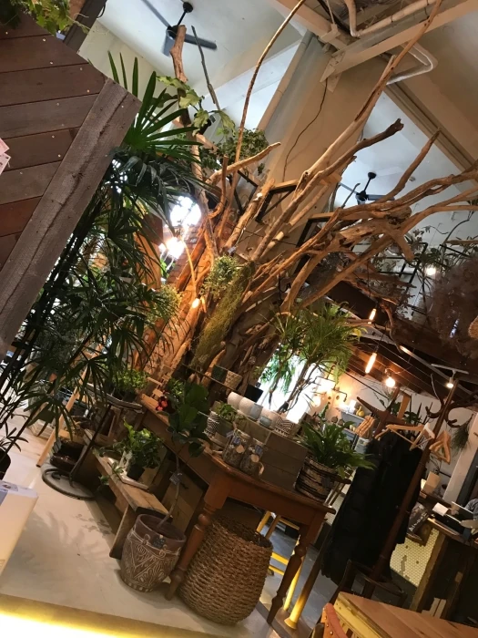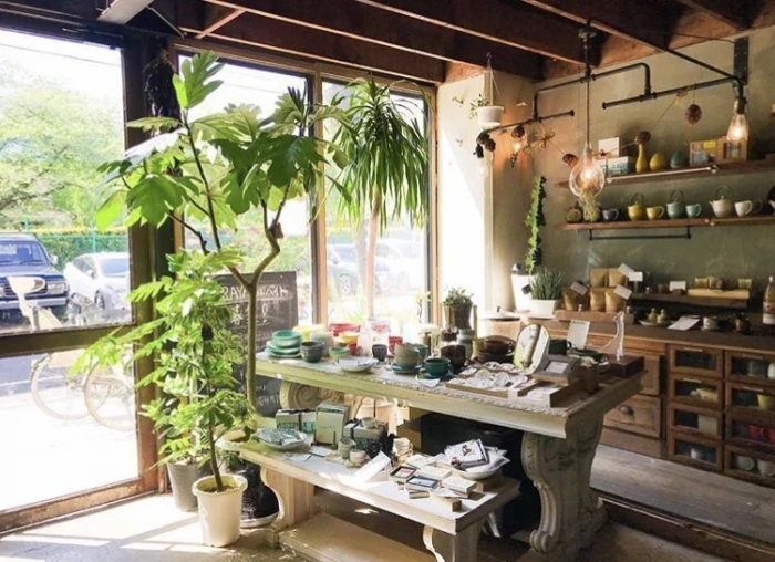 グリーンや食器が購入出来たり、奥にはフォトスタジオ、2階には工房がありと、