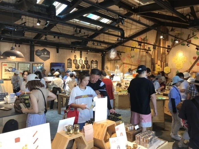 初めて出向いたところだったのですが、オープンして1年程、カフェとベーカリー、菓子工房を併設しミツバチの生態やはちみつが出来るまでの展示等、家族で楽しめるはちみつ専門店です。この日ははちみつの日と相まって大大大盛況。