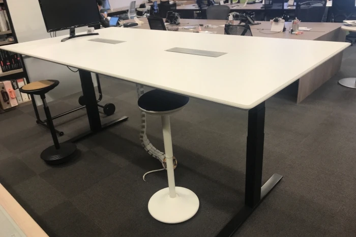 デスクの天板の高さを上下に昇降できるデスクです。