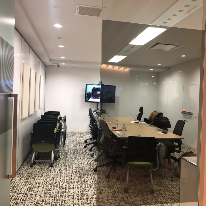 ガラス貼りの会議室にとても有効で、こちらのフィルムを貼ることで外から見るとモニターの画面が真っ暗に!
