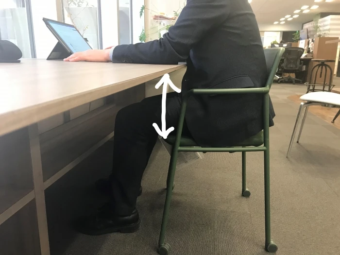 チェアは高さ調整機能がついているものを選定するほうが失敗が少ないです。