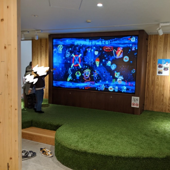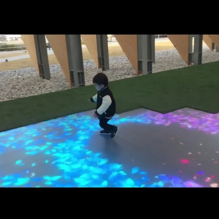 中には人工芝がひいてあり、踏むと花びらが動いていくプロジェクションマッピングが!
