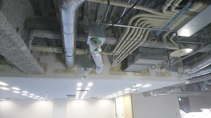 天井の種類はビルによってコンクリートのスラブが出てくるところと、金物の構造体のデッキスラブが出てくるビルがあります。