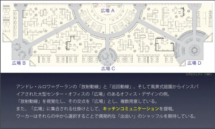 室長の考え方はP社内では浸透していて、その考え方を含め概念コンセプトを研究開発していたのが、P社内にあったオフィス環境研究所で所長として中核を担っていた地主先生(現:東京造形大学・地主教授)でした。