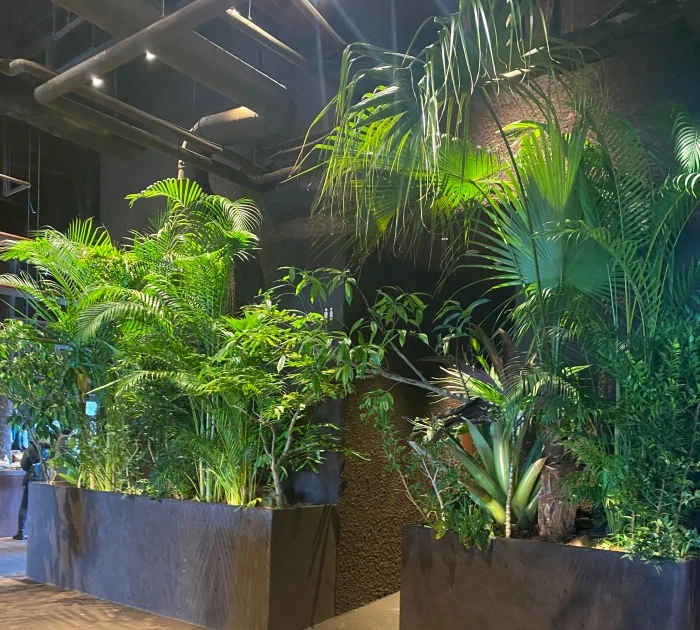 心地よい雰囲気と背の高い植栽に囲まれて、