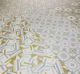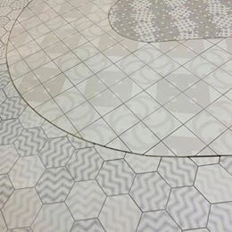 横浜を象徴するレンガを、同じ土を素材とするタイルへと置き換え、60種類におよぶオリジナルのパターンを製作されたそうです。