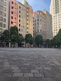 またヴィスがあるNBFコモディオ汐留ビルの床材も石畳で施されており、目を惹きます。