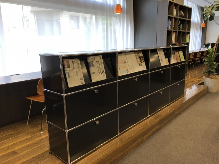 ヴィスの社内では、雑誌を見せる収納をしていたり、